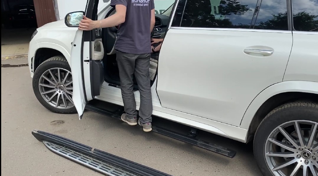 Комплект модельных выдвижных электро порогов для автомобиля Mercedes-Benz GLS в кузове X167, призван не только облагородить внешний вид автомобиля, элегантным процессом посадки и высадки водителя и пассажиров, но и обеспечить комфорт в этом процессе. Автомобиль довольно высокий, и людям с средним и ниже среднего роста, пожилым людям, а также детям посадка и высадка приносит немало дискомфорта! Выдвижные электро пороги решают этот вопрос на 100%!