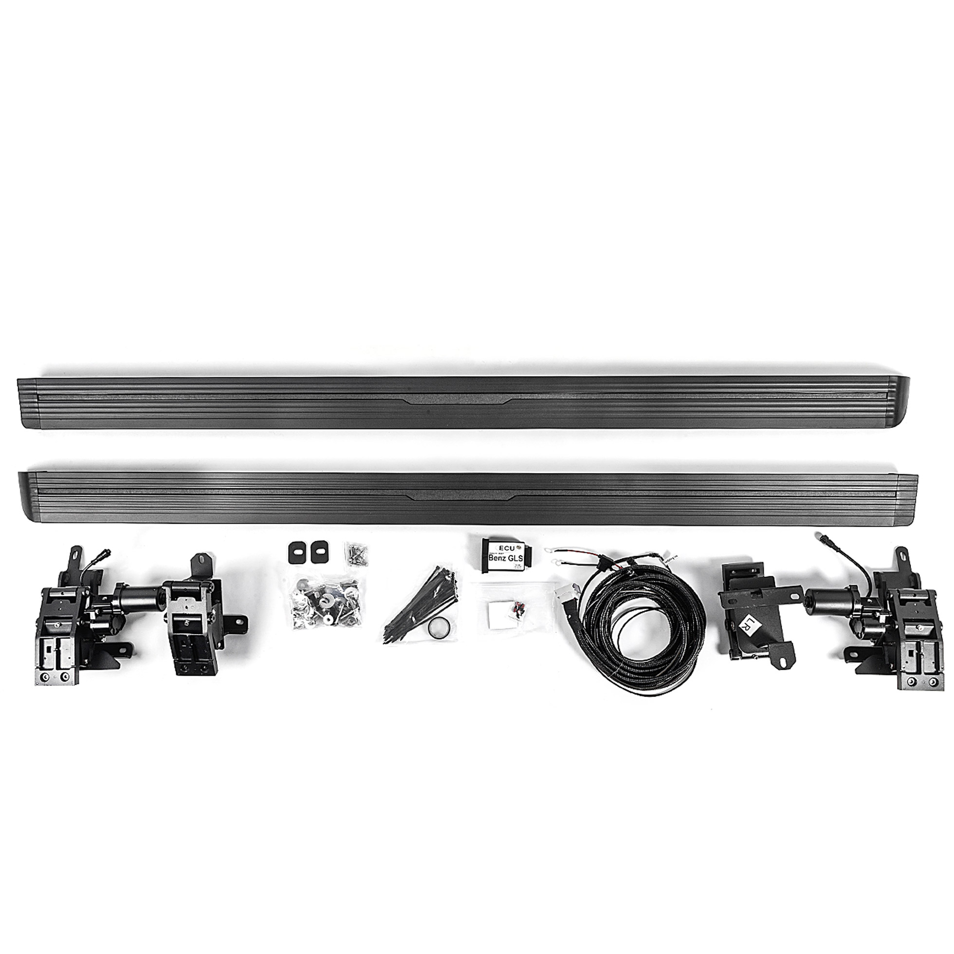 Комплект выезжающих электро-порогов для Mercedes Benz GLS X167 2019+ полностью модельный. Это означает, что все крепления выполнены в необходимом формфакторе. Монтаж производиться на штатные крепления, без необходимости высверливания дополнительных отверстий и сварочных работ. Блок управления принимает необходимый сигнал открытия двери и посылает команду активации мотора.